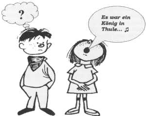 Die Kätchenszene, wie man sagt, aus Faust I, Seite 89 und folgende, abends, Gretchen allein zu Haus und ziemlich
