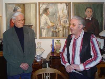 Interessierte können die ausgestellten Bilder betrachten, mit dem Maler über seine Bilder diskutieren oder sich